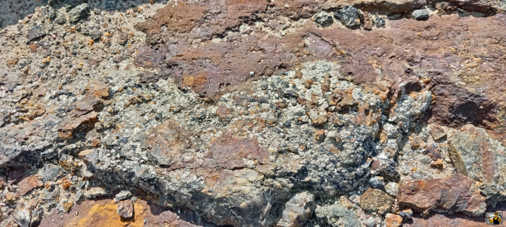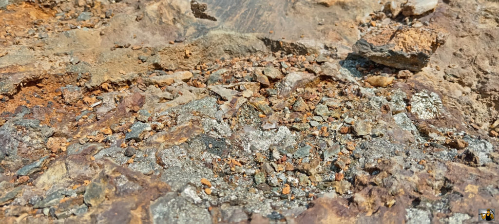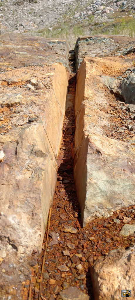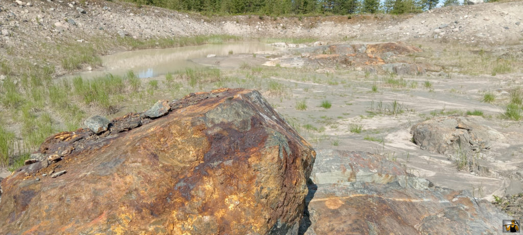 Rapautuvaa sulffidipitoista kiviainesta tässä peittämättömässä koekuopassa.